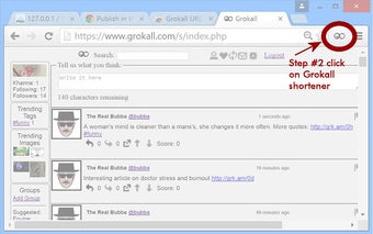 Once installed, the Grokall URL Shortener adds a button to your Chrome browser. When you come across a long URL that you want to shorten, simply click the Grokall infinity symbol button and a shortened URL will be generated using Grokall.com's Grk.am website.